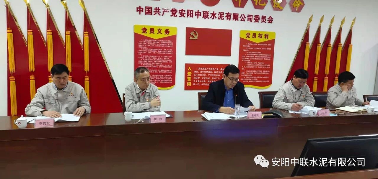 按照中國(guó)聯(lián)合水泥黨委關(guān)于認(rèn)真開好2020年度民主生活會(huì)通知要求,2月24日上午,安陽中聯(lián)2020年度黨員領(lǐng)導(dǎo)班子民主生活會(huì)在公司黨員活動(dòng)室召開。中國(guó)建材股份黨委常委、執(zhí)行董事、副總裁,中國(guó)聯(lián)合水泥黨委書記、董事長(zhǎng)崔星太通過視頻連線督導(dǎo)會(huì)議并作點(diǎn)評(píng)講話。中國(guó)聯(lián)合水泥黨群工作部主任侯萍、紀(jì)檢監(jiān)察室副主任董治及安陽中聯(lián)黨委委員、領(lǐng)導(dǎo)班子成員參加會(huì)議。安陽中聯(lián)黨委書記、總經(jīng)理黃頌高主持會(huì)議。